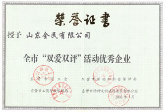 省級示范企業(yè)榮譽證書2001.12